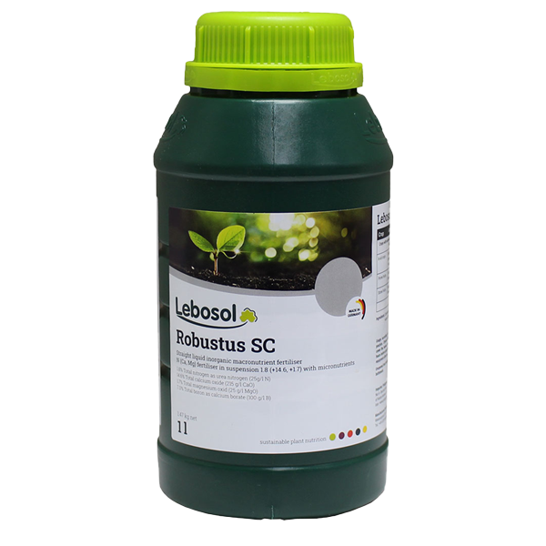 Lebosol® Robustus SC یک کود مایع  حاوی کلسیم و عناصر ریزمغذی است که جهت افزایش مقاومت گیاهان در برابر تنش‌های محیطی و بیماری‌ها مورد استفاده قرار می‌گیرد. این محصول با بهره‌گیری از ترکیبات طبیعی و فرموله‌ای پیشرفته، استحکام سلولی گیاه را افزایش داده و به بهبود عملکرد و کیفیت محصولات زراعی و باغی کمک می‌کند.